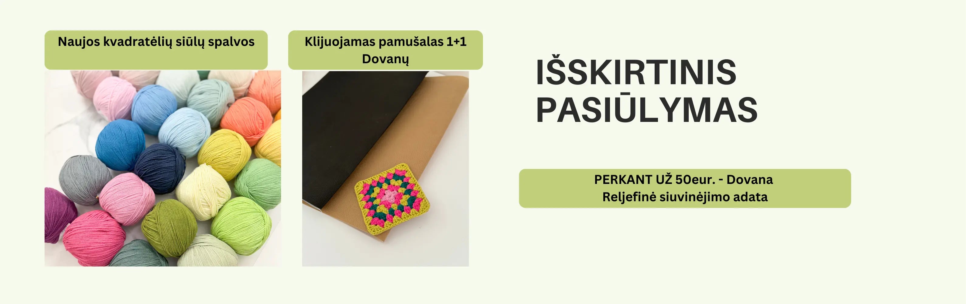 Išskirtiniai pasiūlymai, nėrimo ir mezgimo priemonėm, mezgimo siūlai, nėrimo virvutės, nertų rankinių...