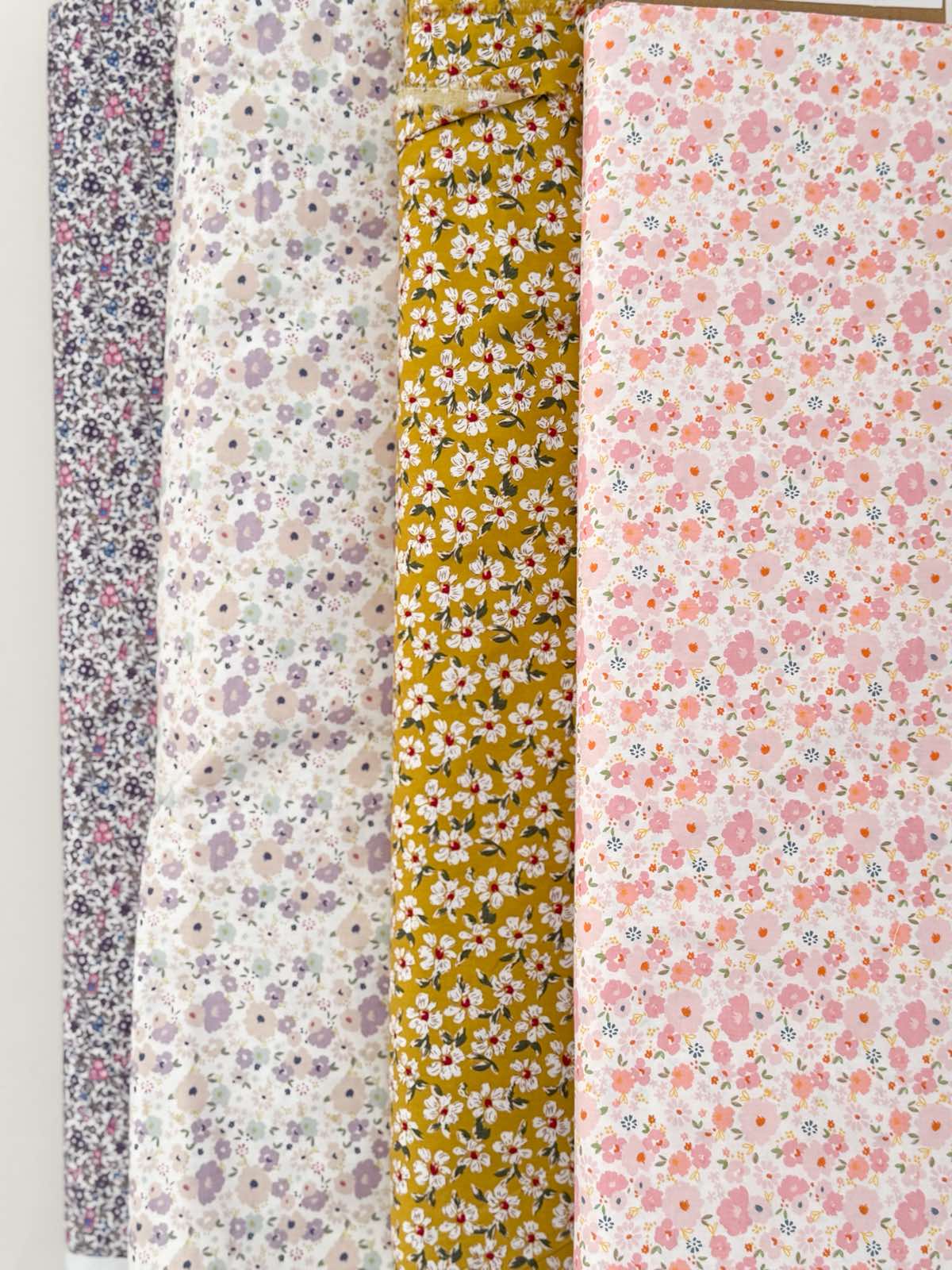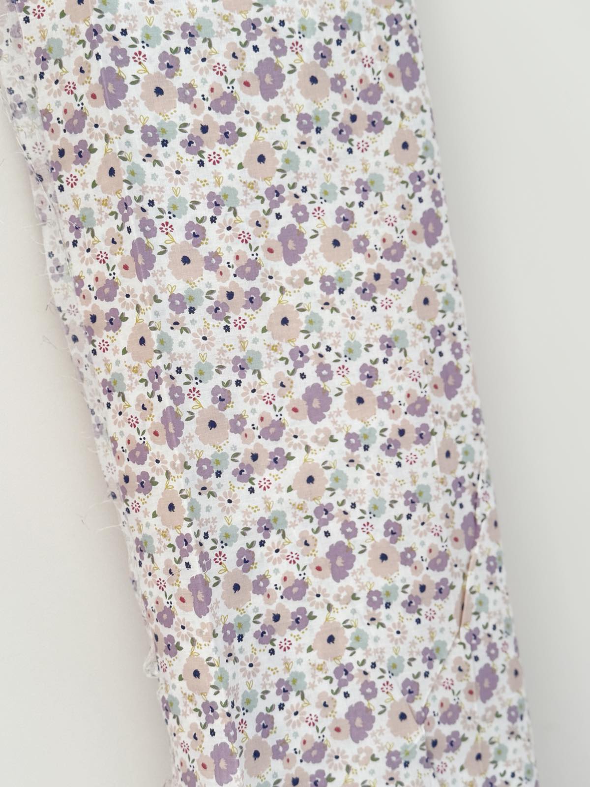 - With lilac, pastel flowers. Composition: 100% cotton. Width: 100 cm.