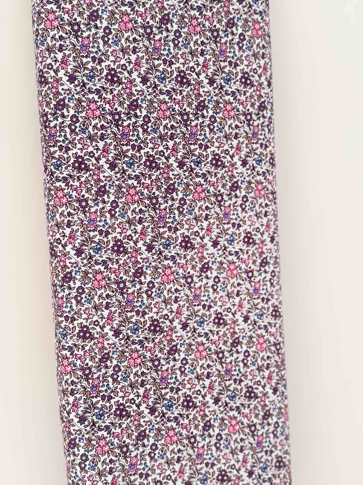 - With purple and pink flowers. Composition: 100% cotton. Width: 100 cm.