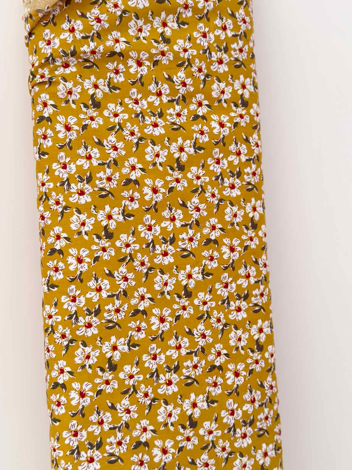 - Yellow with white flowers. Composition: 100% cotton. Width: 100 cm.