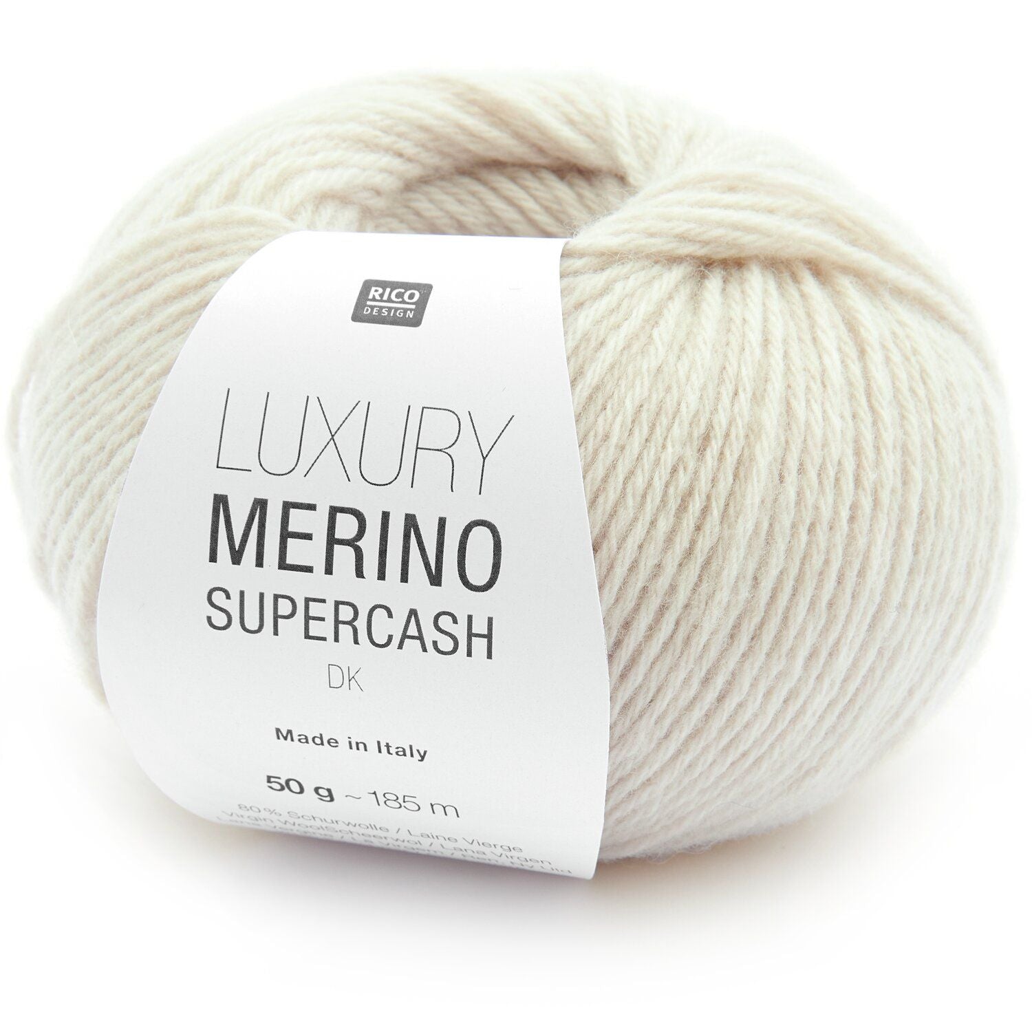 Rico „Luxury Merino Supercash dk“ Išskirtinės prabangos Siūlai susukti tolygiu klasikiniu sukimu, šie siūlai yra aukštos kokybės. Kašmyras šiems siūlams suteikia prabangos ir neįtikėtiną minkštumą.