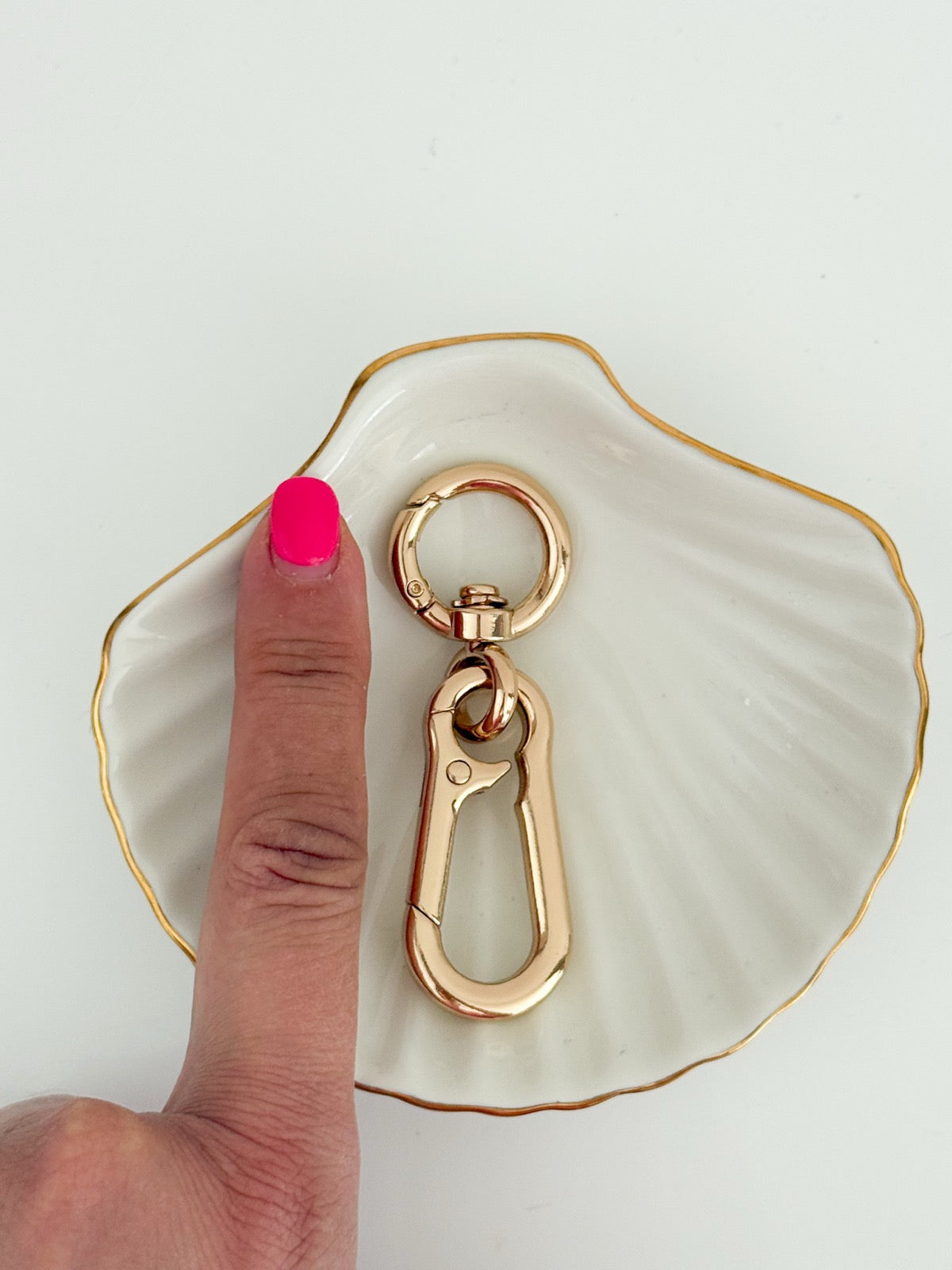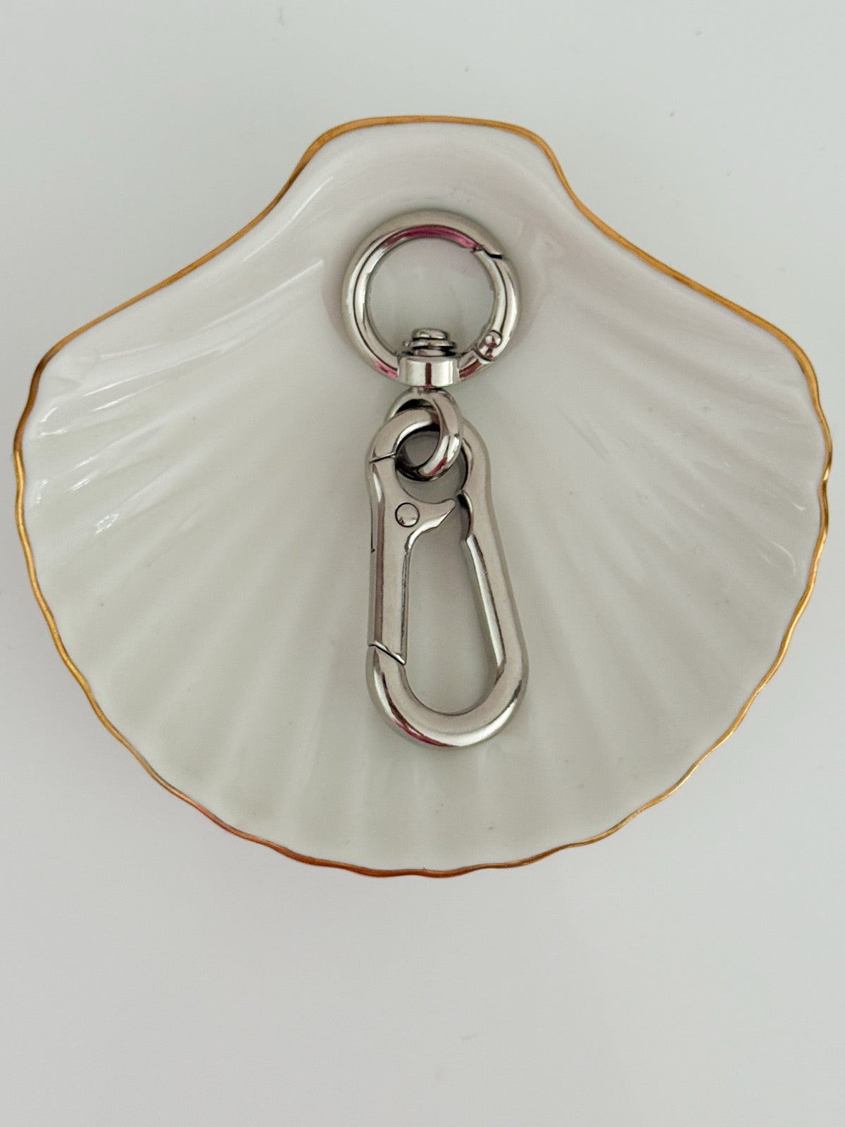 A stylish and practical metal ring with an integrated carabiner clasp is a great choice for keys, pendants, or creating accessories.