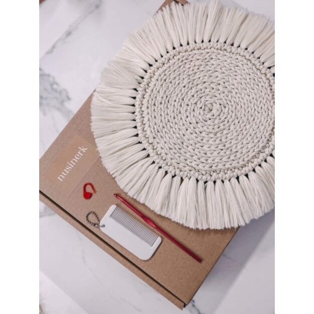 In the box you will find all the tools: the required amount of rope for 1 coaster, a candle, a marker, combs, instructions and a video tutorial.