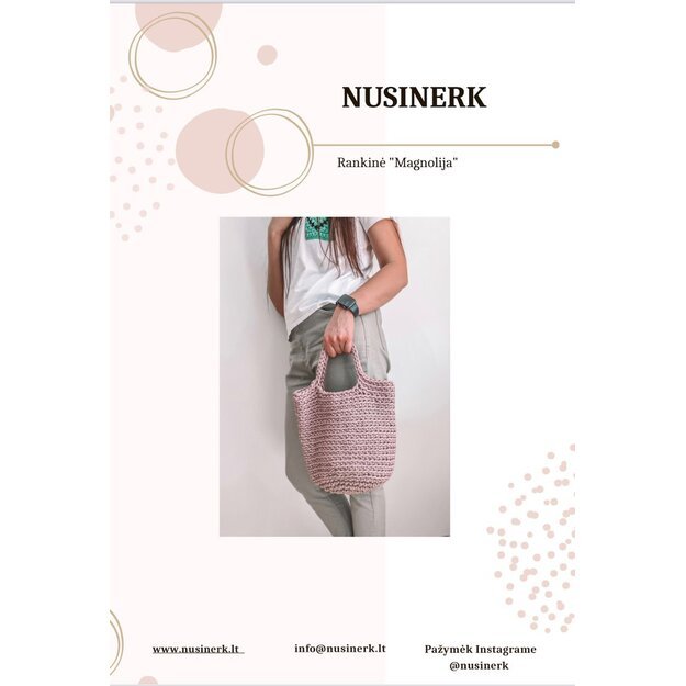 In this box you will find: a description with a QR code (link to the video tutorial), strings for one handbag, a hook, and 2 markers.
