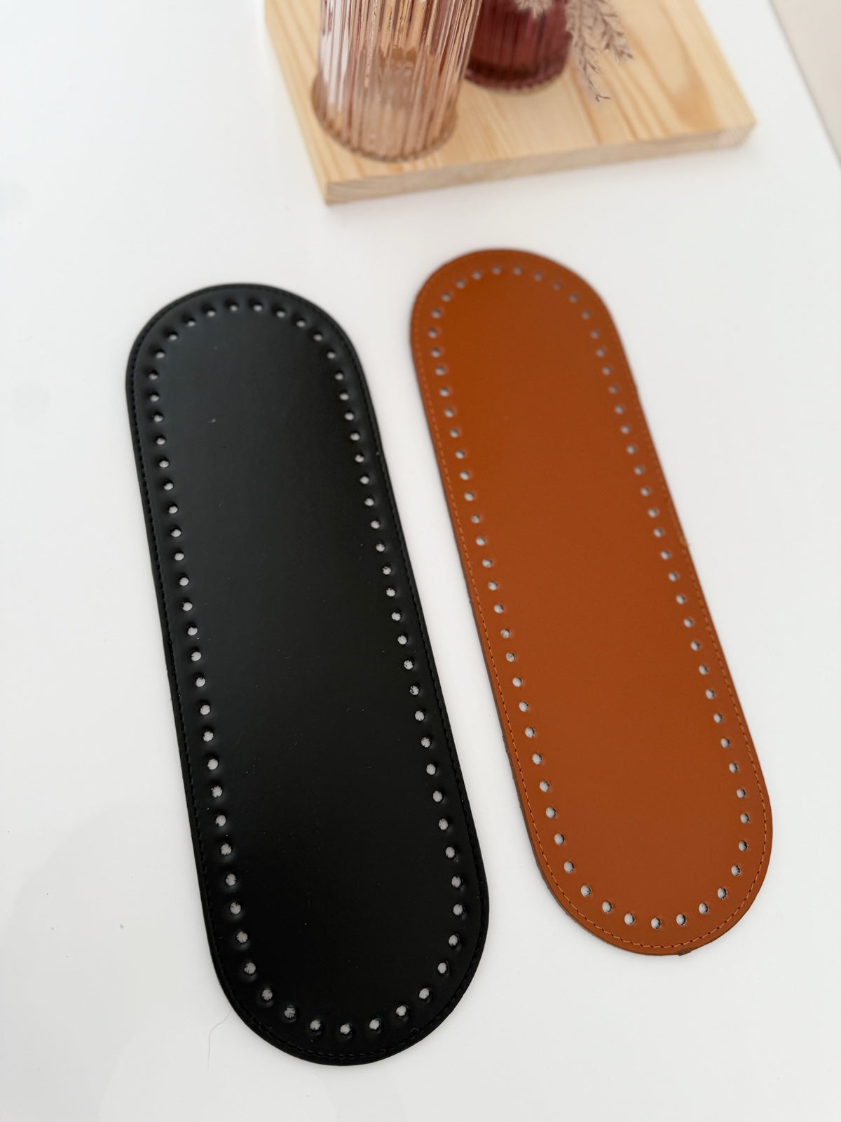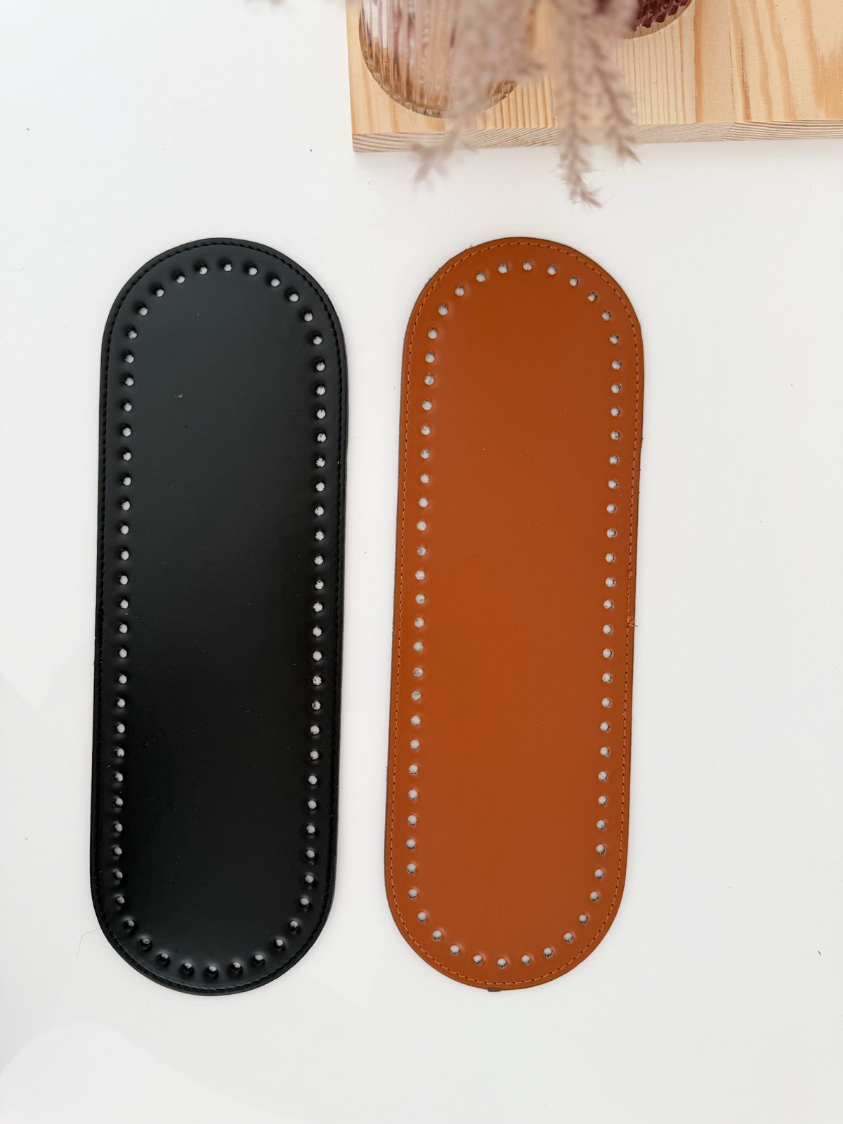 Oval eco-leather bottom for crocheted handbag
