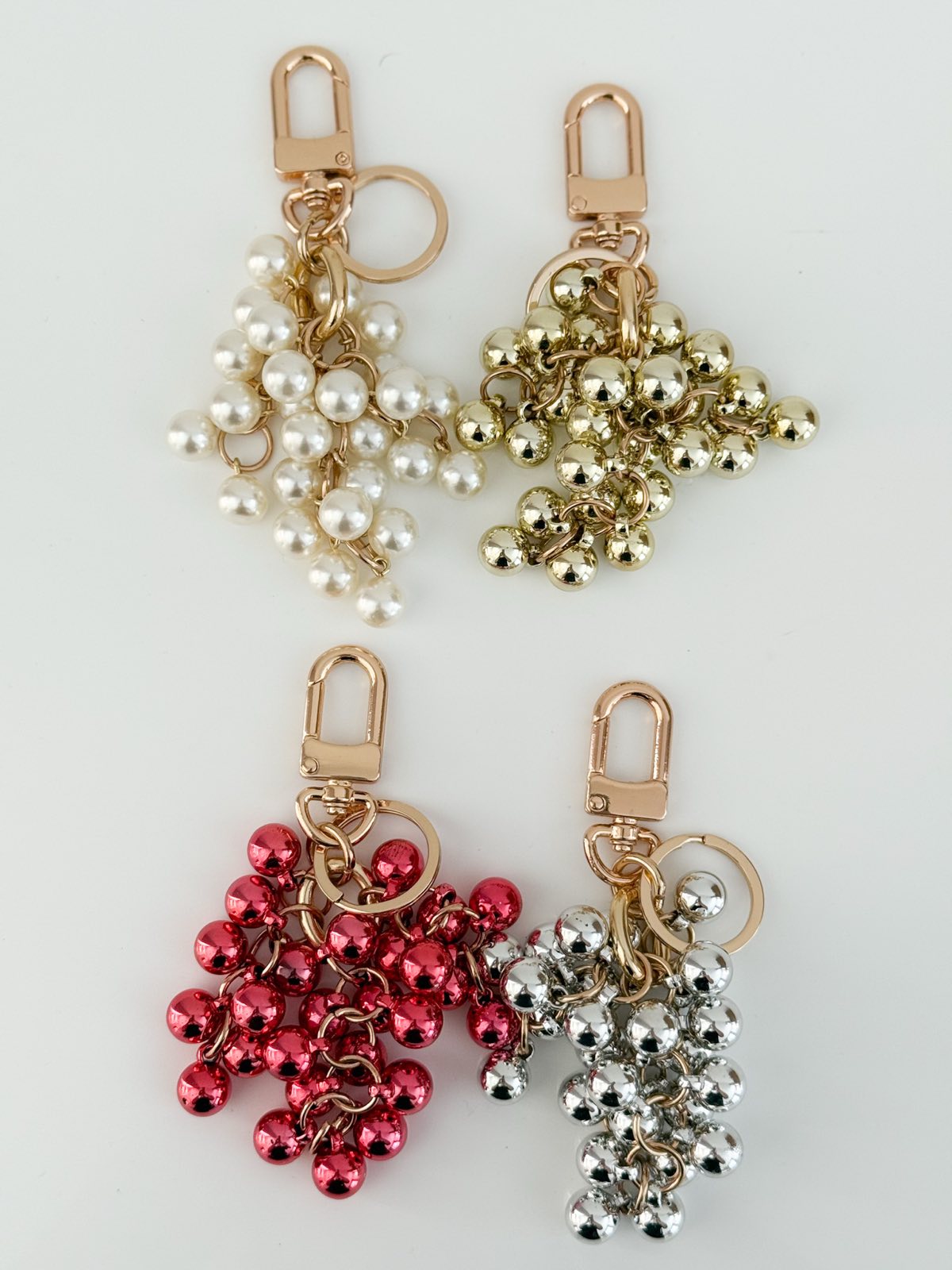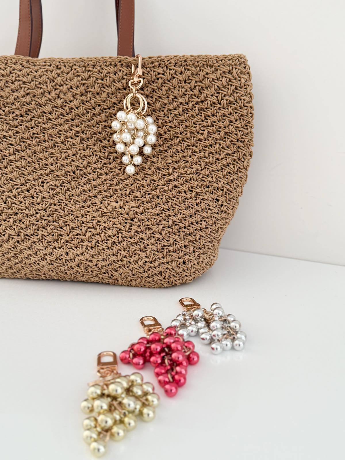 Let your handbag shine with the exclusive "Grapes" pendant - an accessory that catches the eye and subtly expresses your sense of style. The pendant, shaped like a classic bunch of grapes, is adorned with pearls or shiny metallic bubbles, giving the accessory an elegant playfulness.