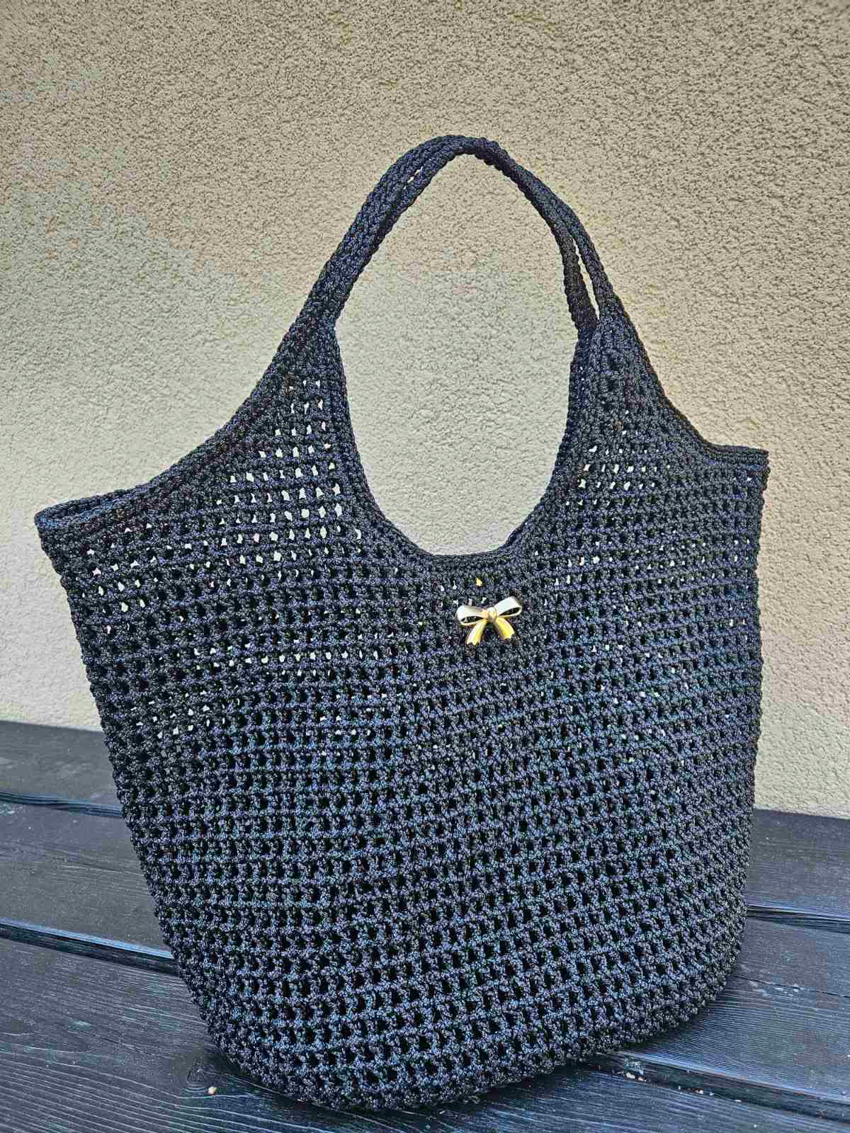 The description is given for crocheting with lurex cord, but it is also suitable for crocheting with waxed or raffia cords. Only discrepancies in measurements are possible.
