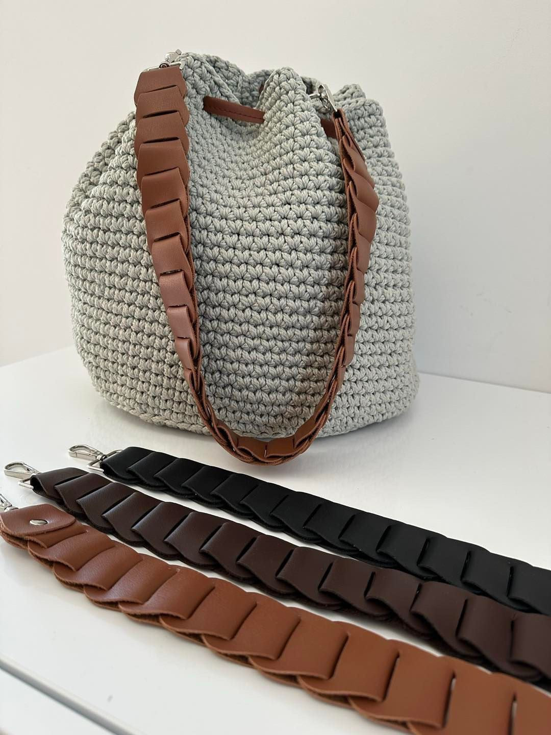 Attachable long handle for handbag. Handle length 60-62 cm, with carabiners at the ends. Made of durable eco-leather.