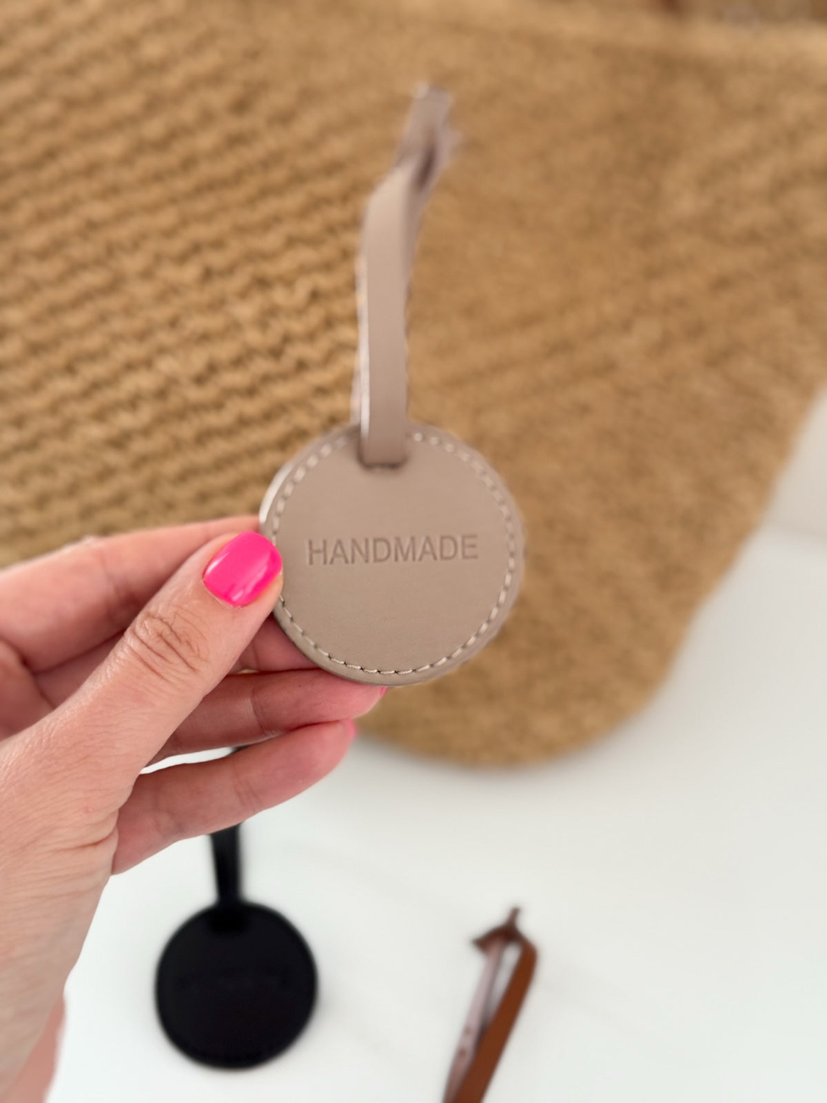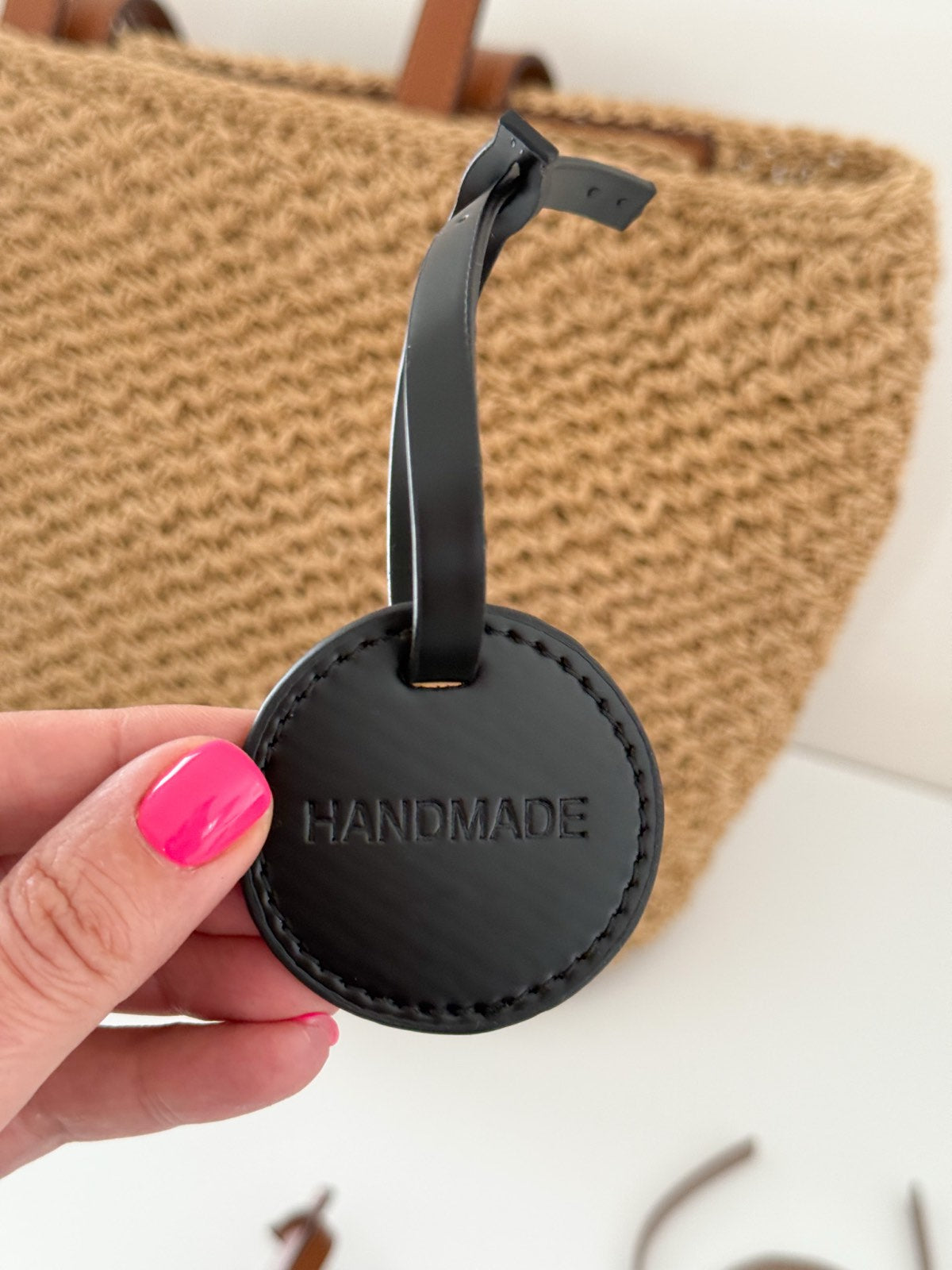 Eco leather handbag charm.