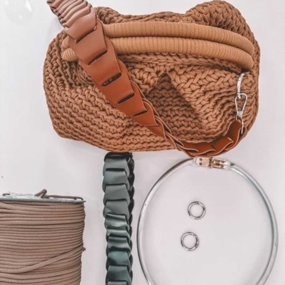 "Tofi" handbag crochet box: crochet ribbon, rectangular metal frame, hook. In this box you will find a crochet video tutorial and description.