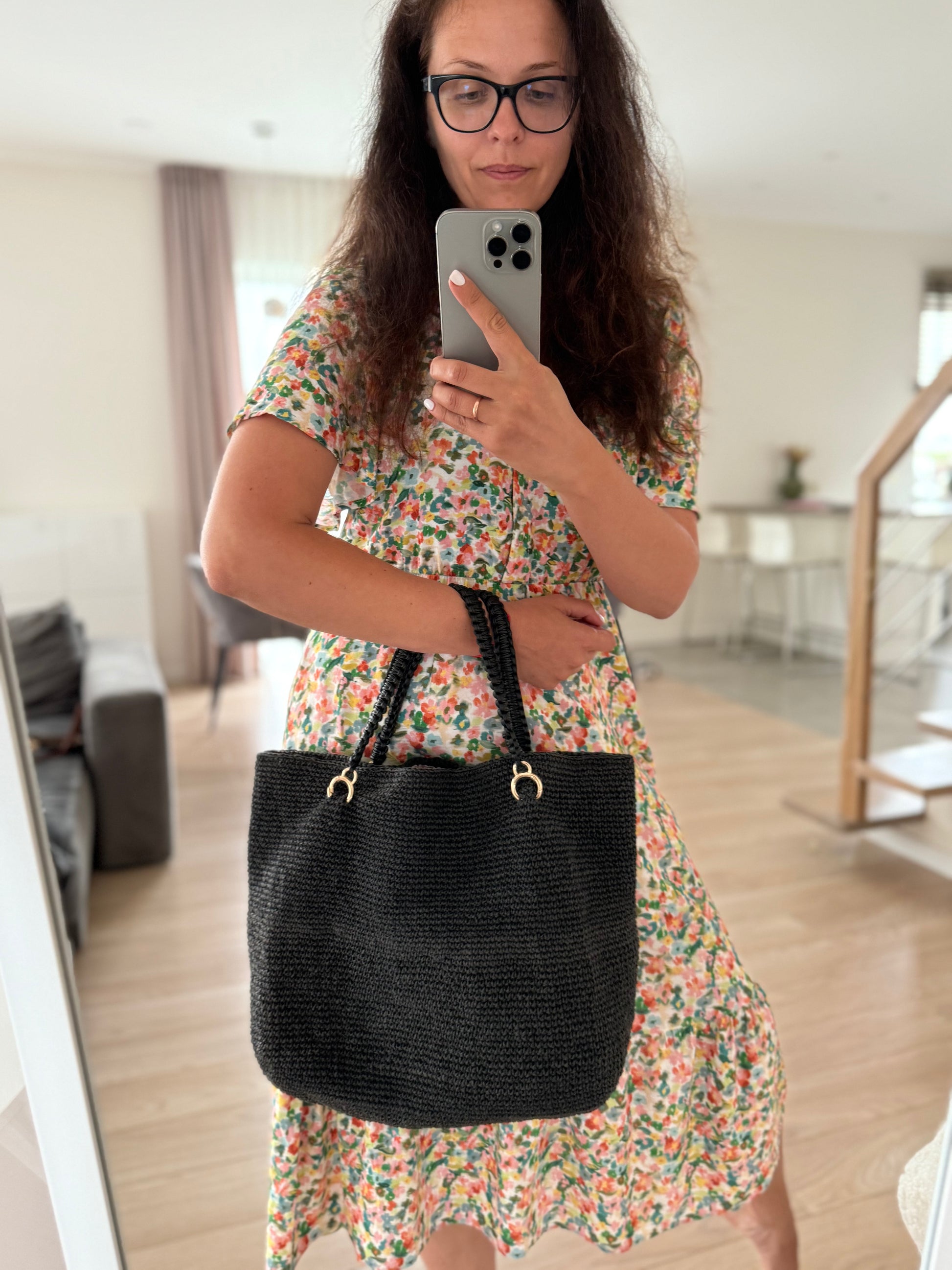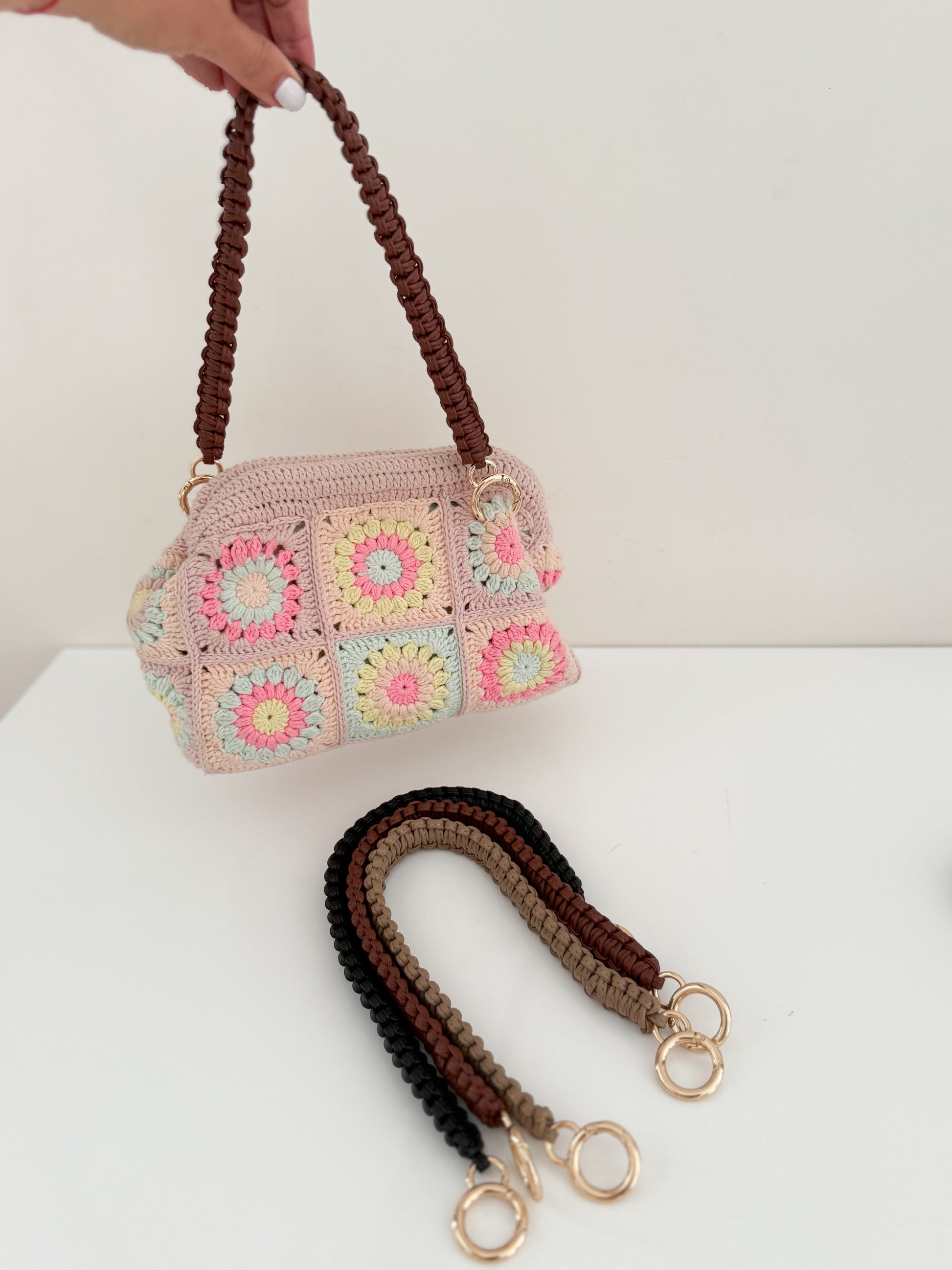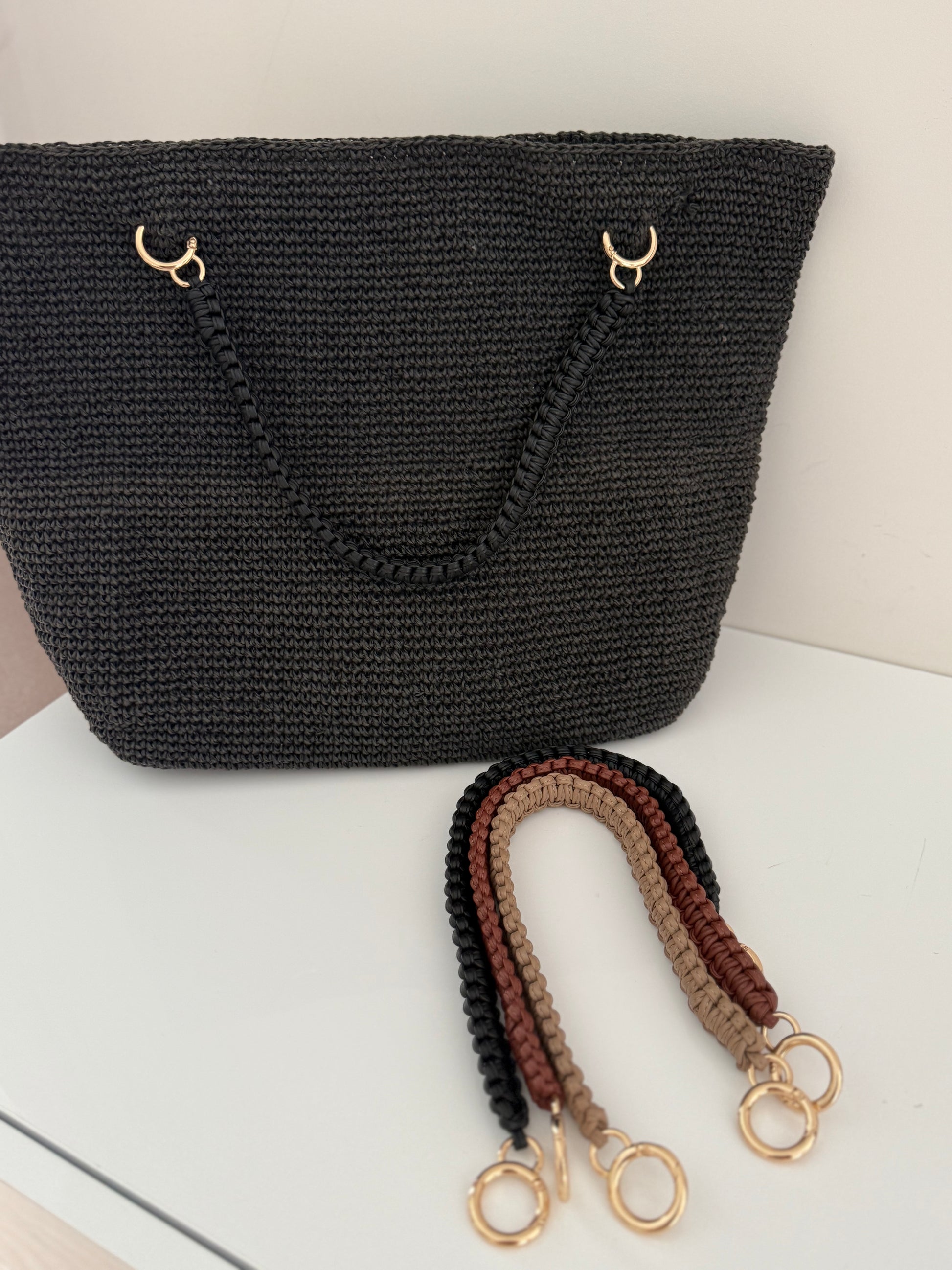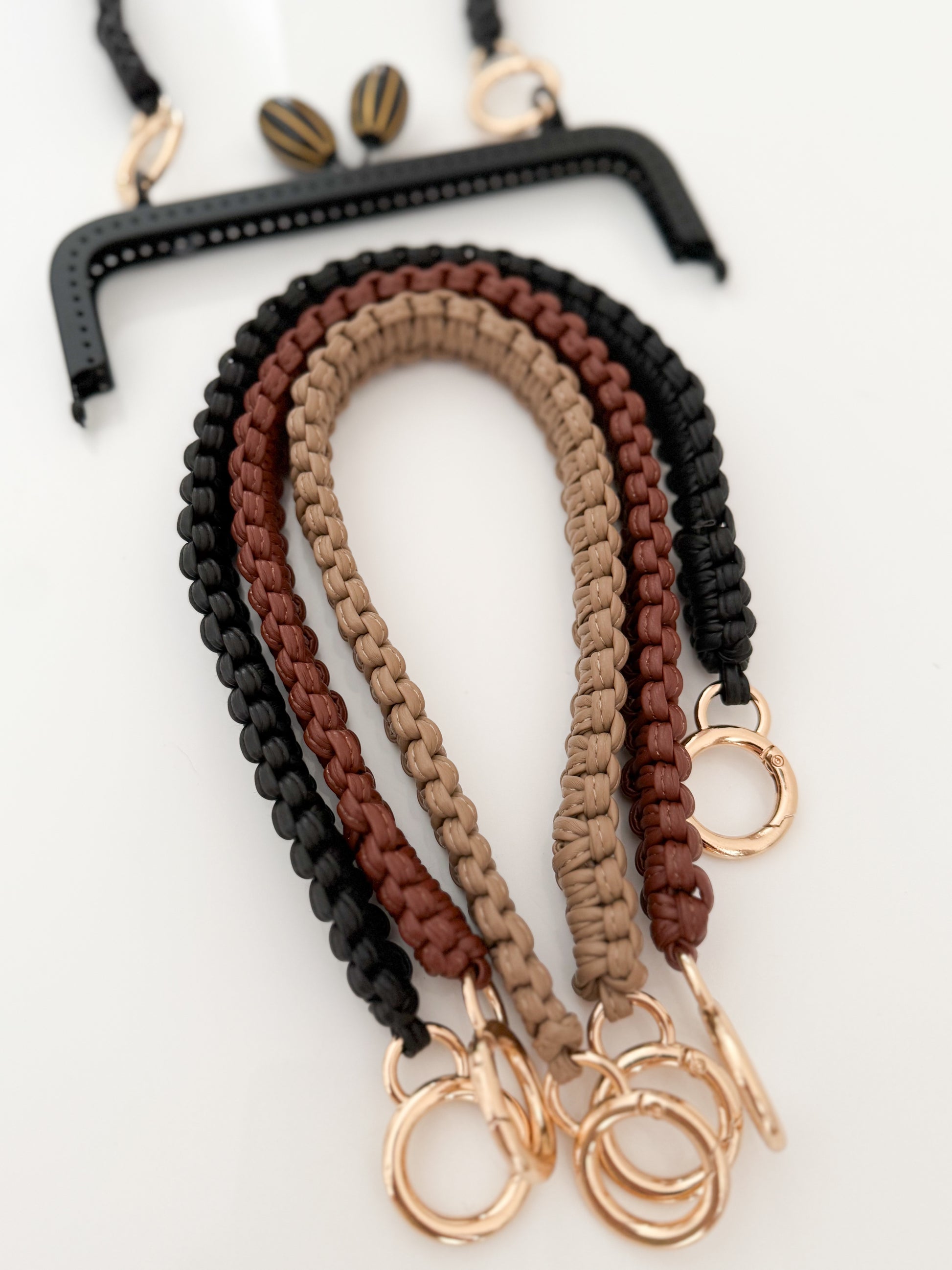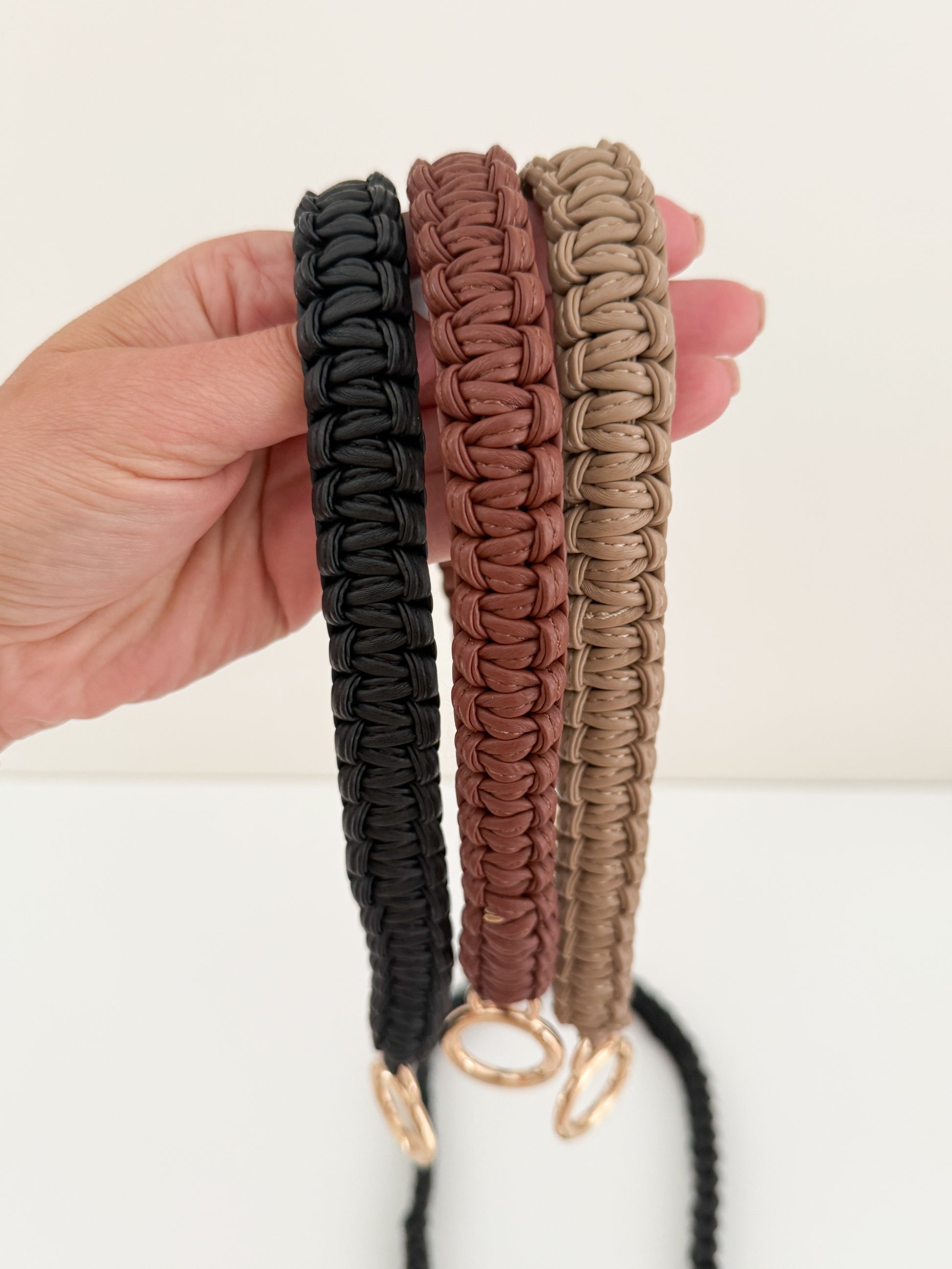 Short eco-leather handle (~60cm) with carabiners at the ends.