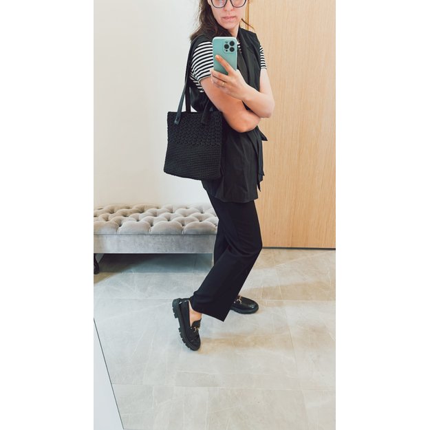 I crochet the handbag with 2-3mm thick cord and a size 4 hook.