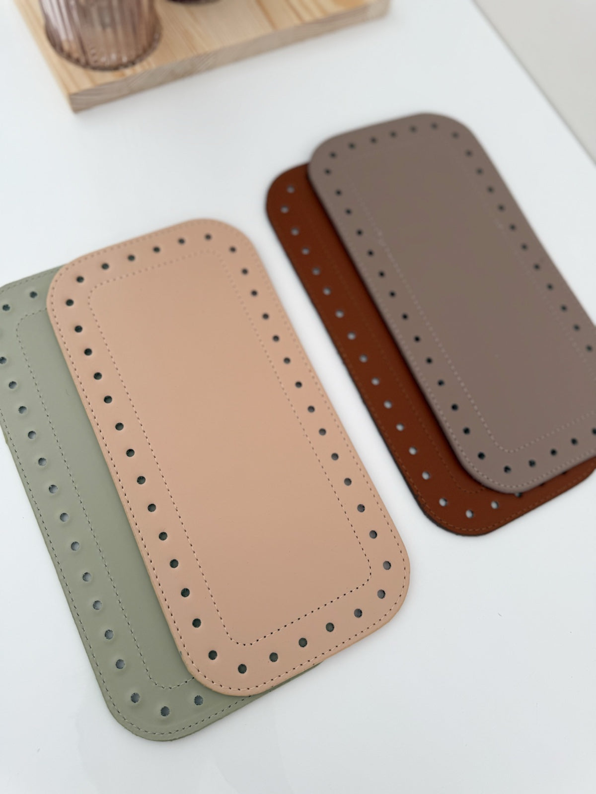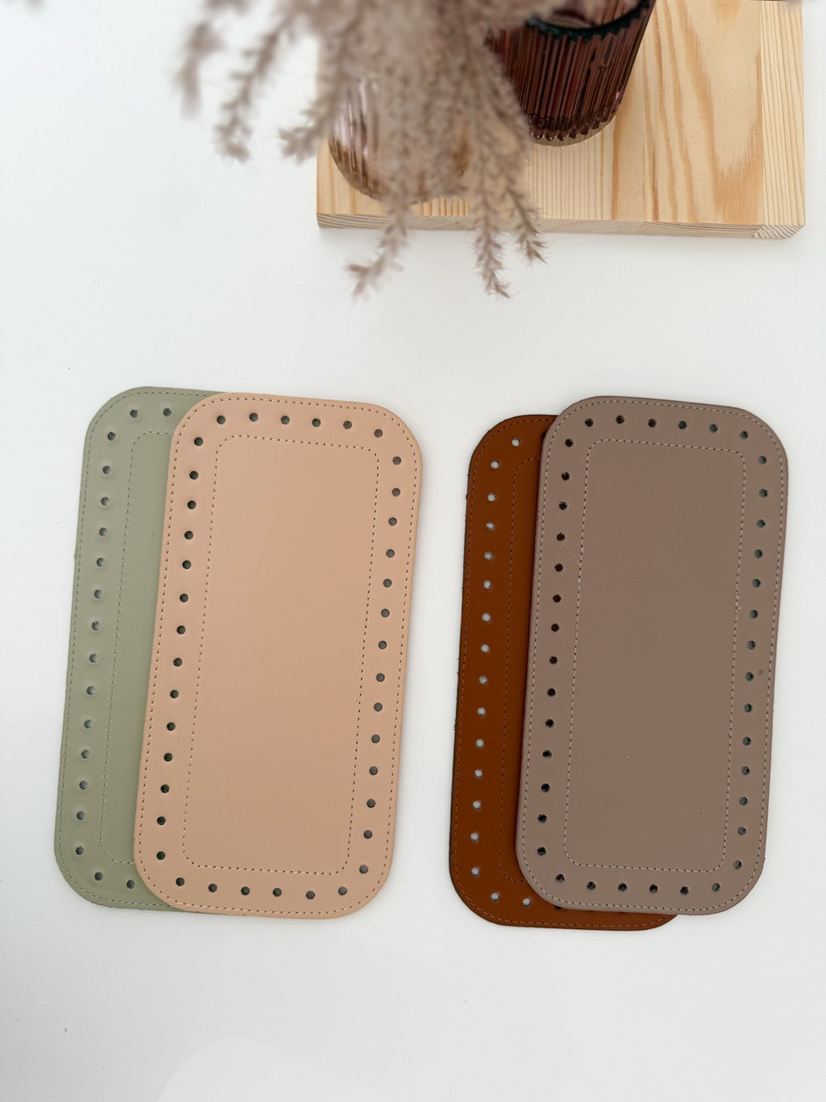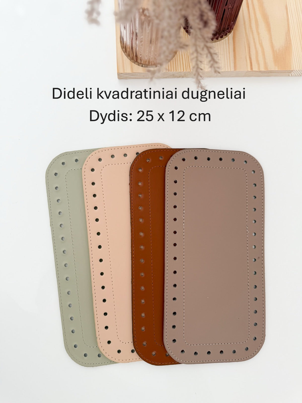 Tvirtas, stačiakampio formos dugnelis su skylutėmis – puikiai tinka nertoms rankinėms ar krepšiams. Palengvina darbą, suteikia gaminiui formą ir profesionalią išvaizdą.