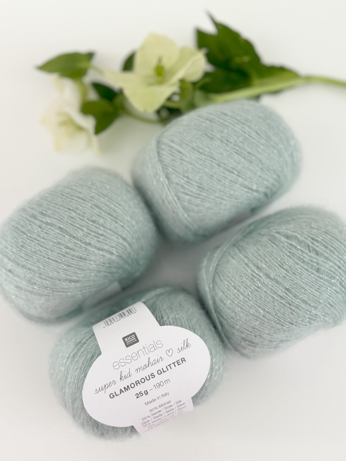 Essentials Super Kid Mohair Loves Silk Glamorous Glitter iš Rico Design– tai aukštos kokybės siūlas su subtiliu blizgesiu. Prabangi Super Kid moheros, šilko ir merino vilnos sudėtis papildyta plonyčiu metalizuotu siūlu, suteikiančiu elegantišką ir rafinuotą žėrėjimą. Minkštas ir itin lengvas siūlas puikiai tinka tiek lengvoms skarelėms, tiek švelniems megztiniams ar palaidinėms.