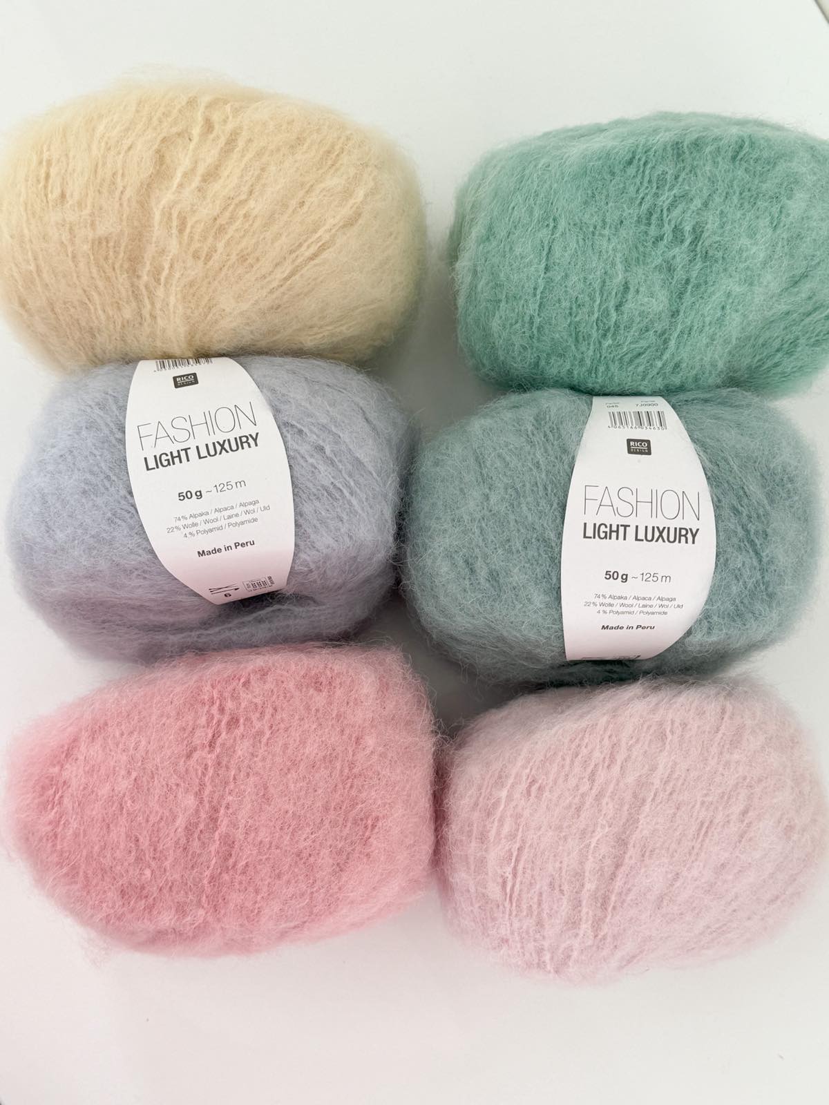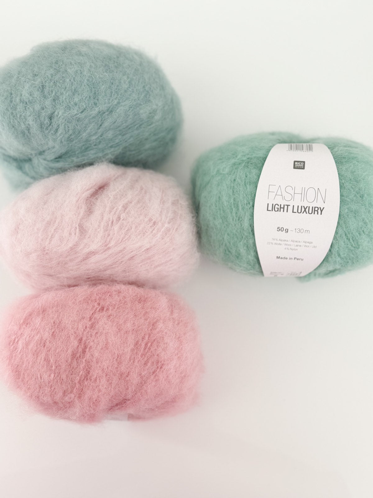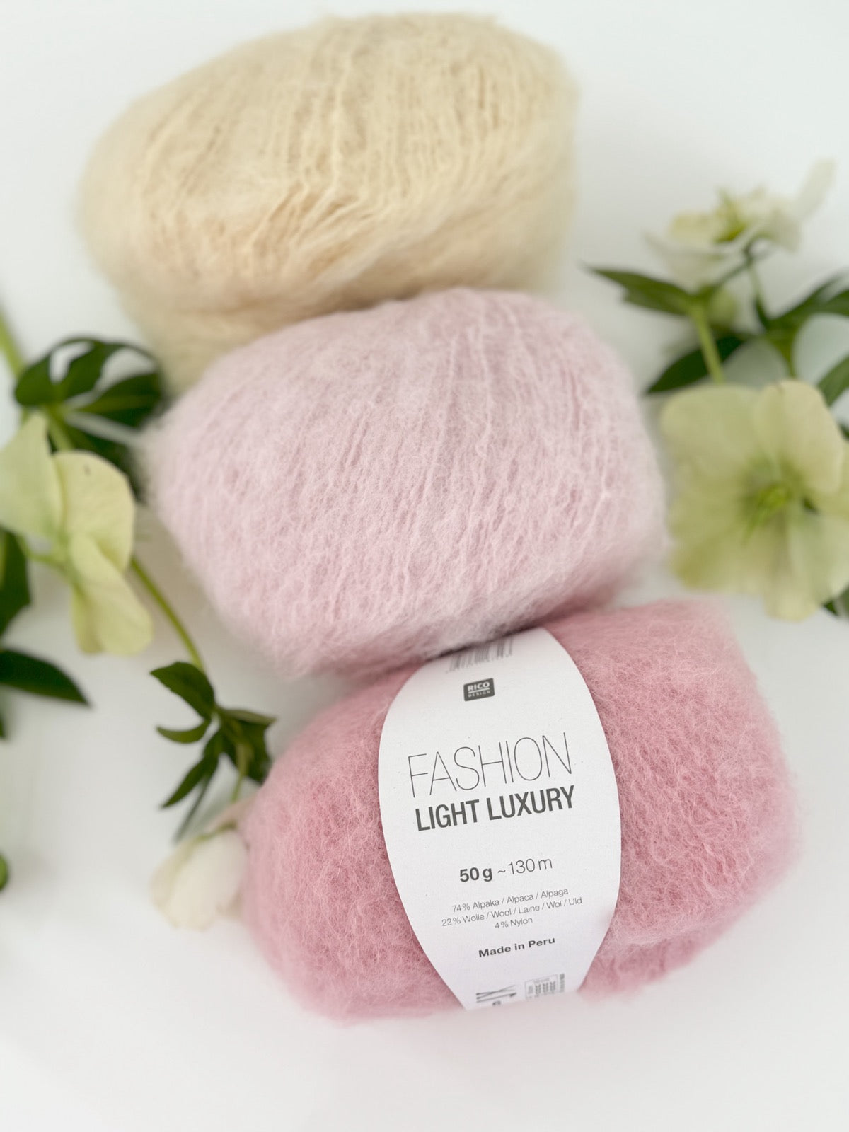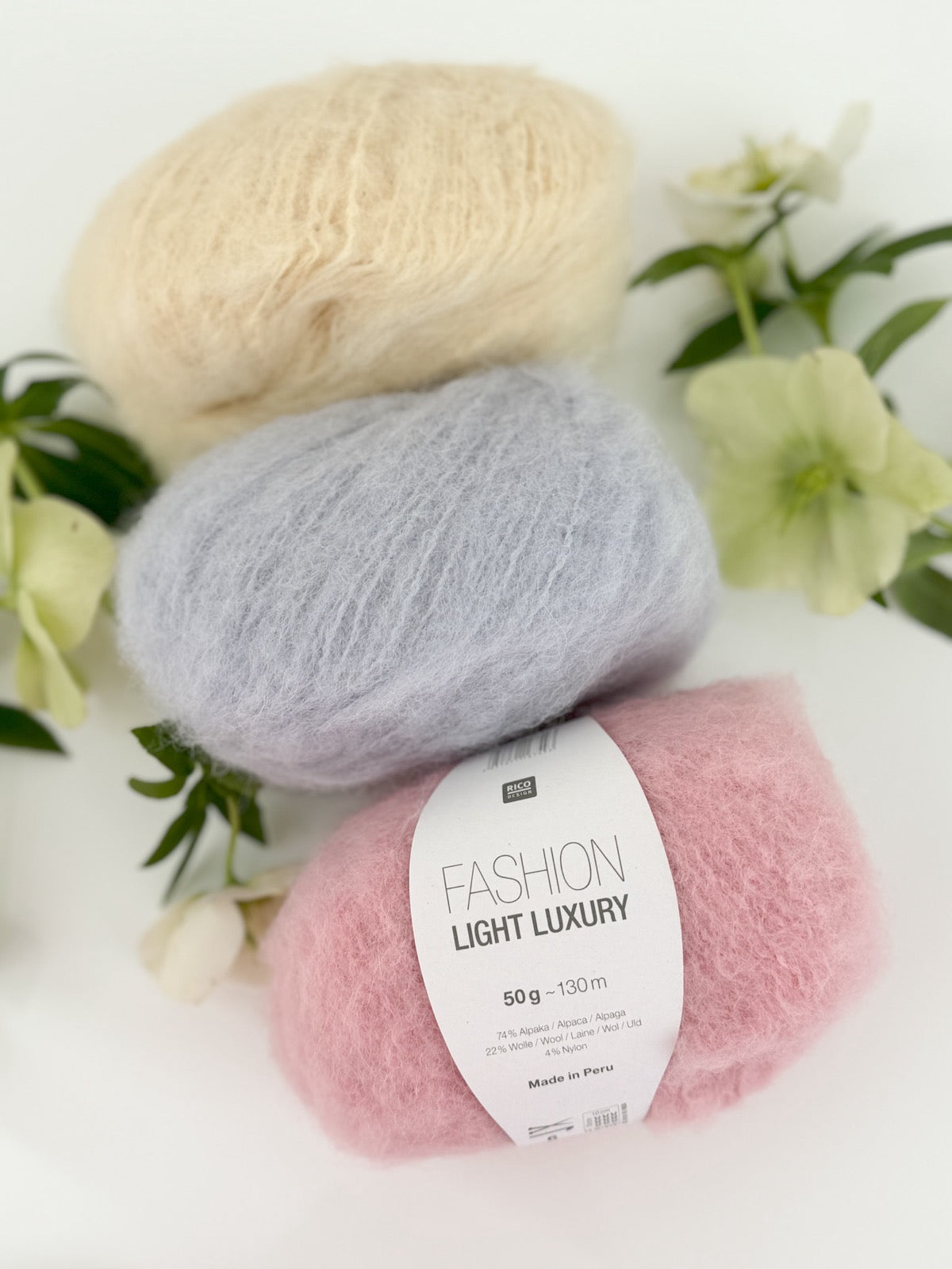 Fashion Light Luxury iš Rico Design– tai itin lengvas, aukštos kokybės alpakos vilnos mišinys su stilinga pūkuota tekstūra. Net ir striukės ar paltai iš šio siūlo bus itin lengvi ir šilti, o šalikai bei kepurės užtikrins ypatingą komfortą ir prabangų pojūtį.