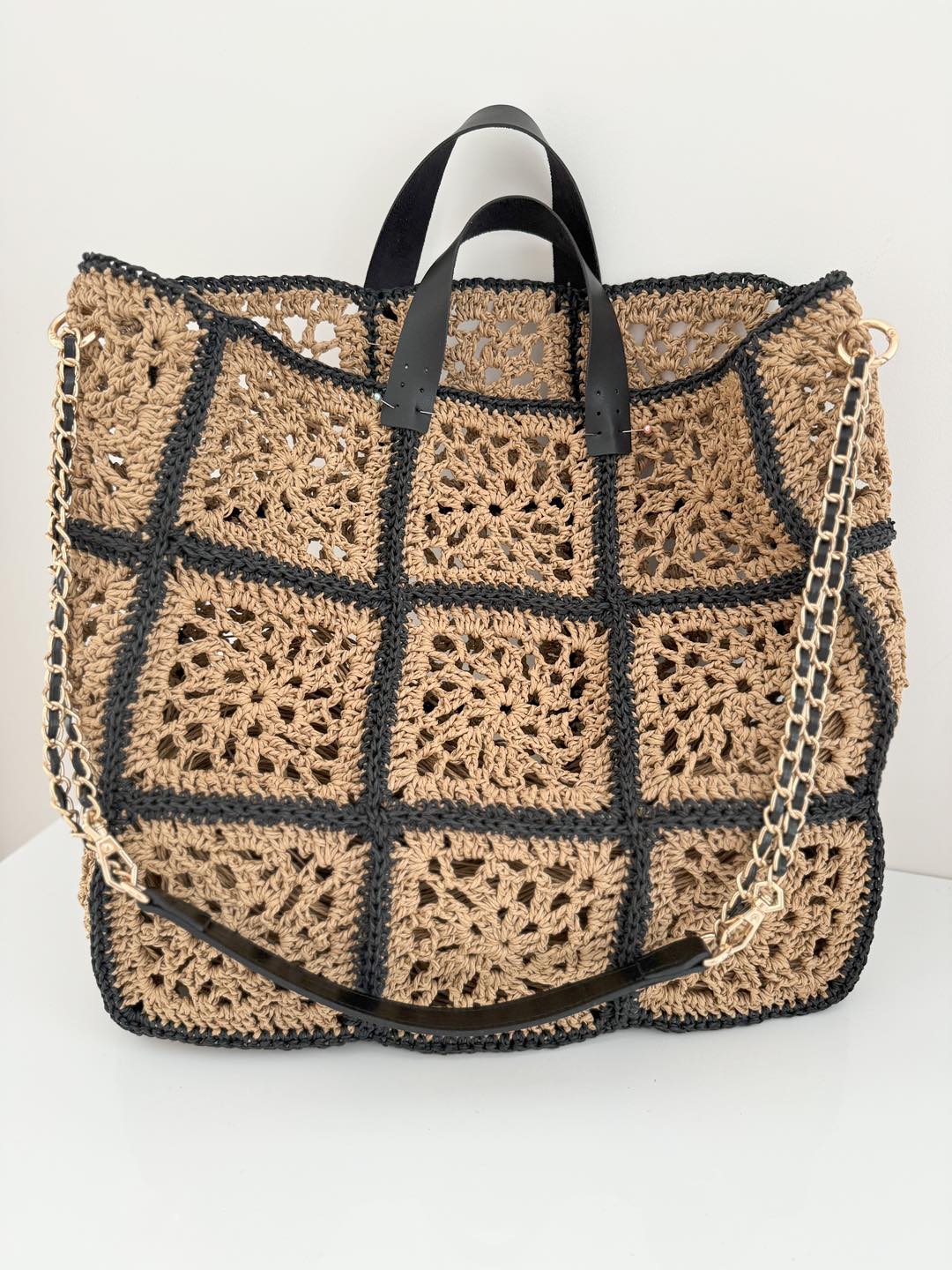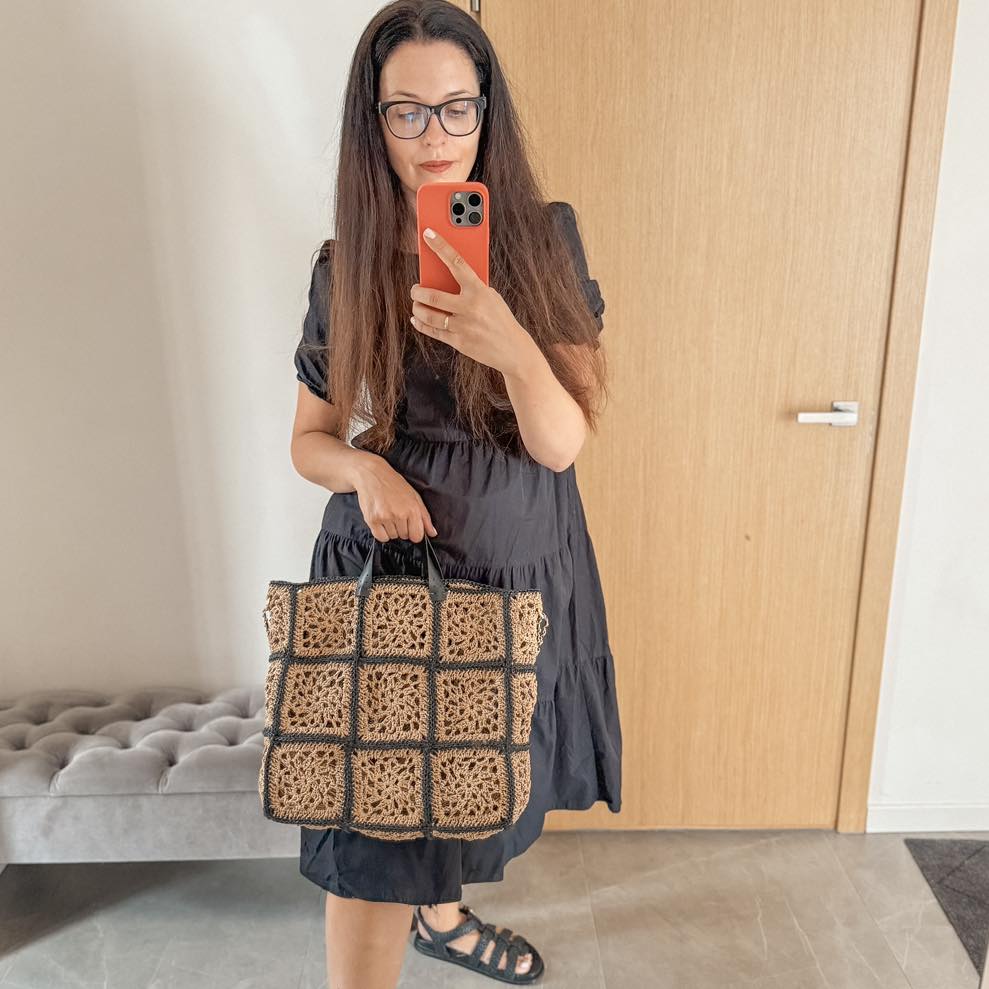 Nėrimo aprašymas „Milano“ – tai stilinga, miesto įkvėpta rankinė, pagaminta iš kvadratinių motyvų, subtiliai apjungtų kontrastingu juodu krašteliu. Klasikinis kvadrato raštas įgavo šiuolaikišką formą – tobula tiek kasdienai, tiek vasaros išvykoms.