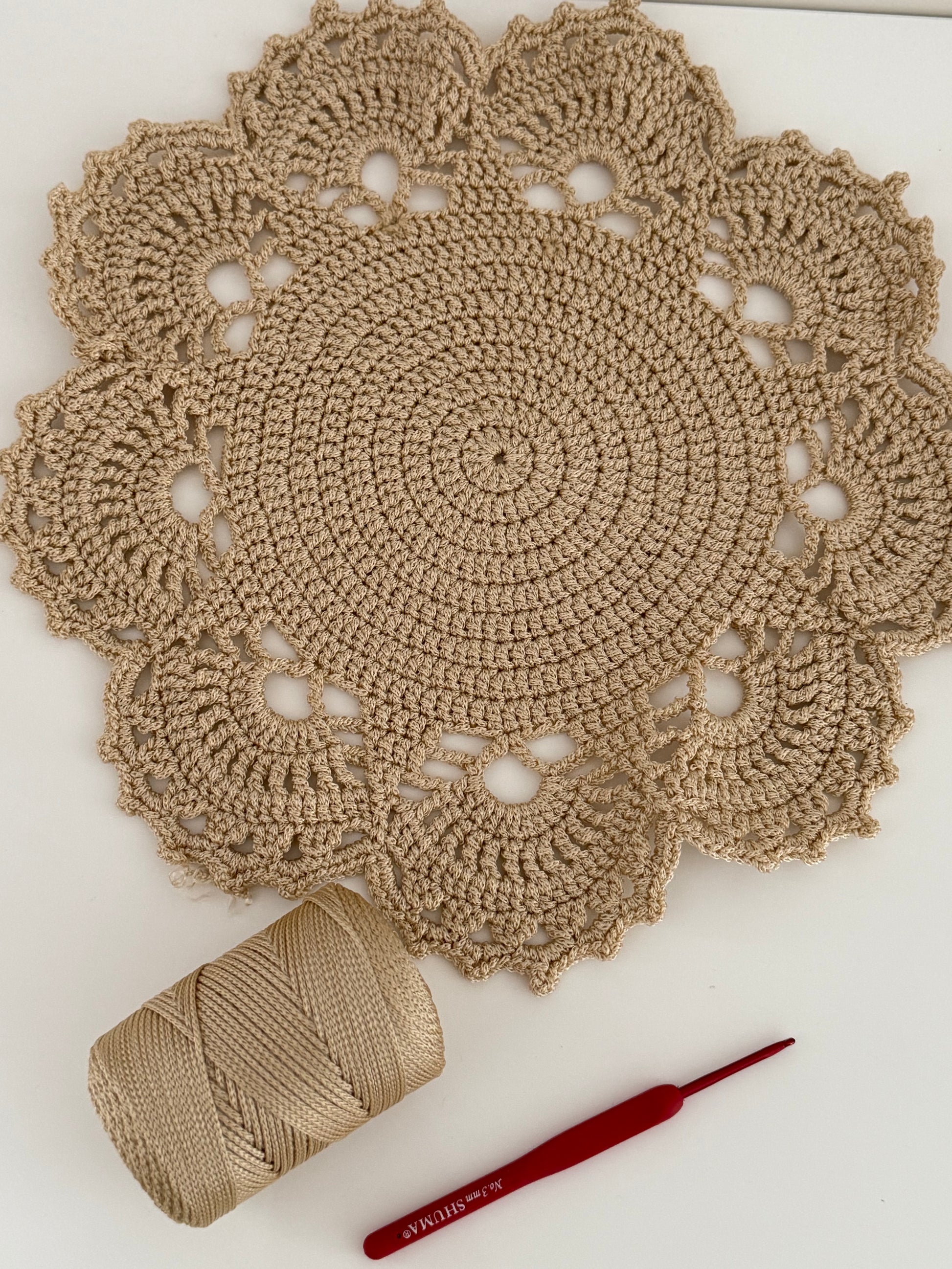Šiai servetėlei/padėkliukui nusinerti tau reikės 230 metrų 1,5mm virvutės ir 2,5 numerio Vąšelio. Visas priemones gali Užsisakyti čia : https://nusinerk.lt/products/1-5mm-nerimo-virvutes