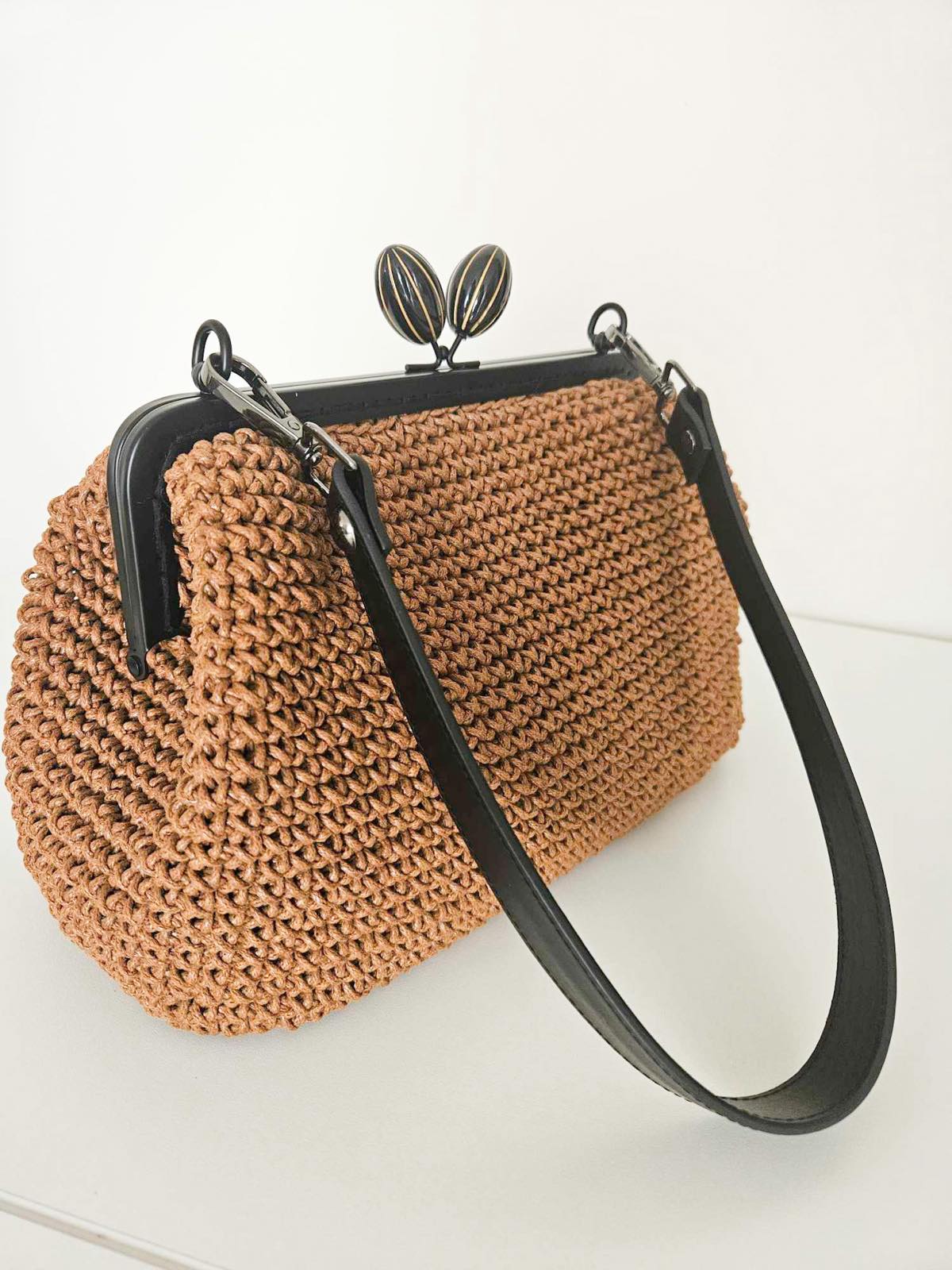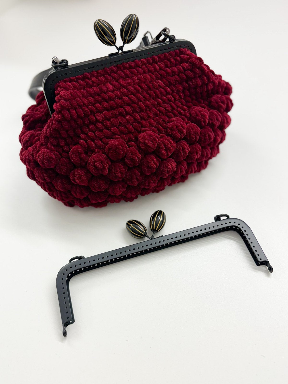 Juodas metalinis prisiuvamas rėmas rankinei |